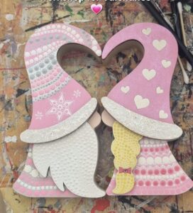 8/2/25 MANDALA DOTTING – £38.00 – Lose yourself in this mindful craft with Angelique from Love Dotting. Book in to dot these 2 super cute kissing gonks – choice of base colour