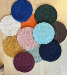28/2/2026 ROPE BOWL WORKSHOP – 2.00PM – 4.30PM – £38.00PP – Join Tina in this fun workshop learning how to make a rope bowl. Ideally you need to know the basics of using a sewing machine. You will start by learning how to make mug coaster then move onto a bowl, this is an introduction to rope bowl making you will have a choice of rope in beautiful vibrant colours to choose from. You will make a mug coaster (4.5”) and a medium size bowl approx size – base 6” top 8” diameter depth 4”. These are VERY addictive so if you get hooked, additional rope will be available to purchase on the day. (additional date & advanced class Saturday June 27th)