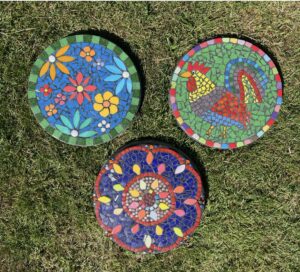 11/7/26 GARDEN MOSAIC STEPPING STONE WORKSHOP – £65.00 – 10.30AM TO 4.00pm – Using your own design or working with templates available on the day, create a mosaic STEPPING STONE to put amongst the flower beds and brighten up the garden – OTHER DATES JULY 11TH