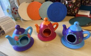 You can bring a project to work on, choose from a variety of crafts at the studio, there may be a charge for some of these, Indian block printing, silk painting, mosaics, card making, mandala dotting, stencilling etc. or just sit & natter in our cosy corner (The Nookery). Refreshments provided and of course cake!